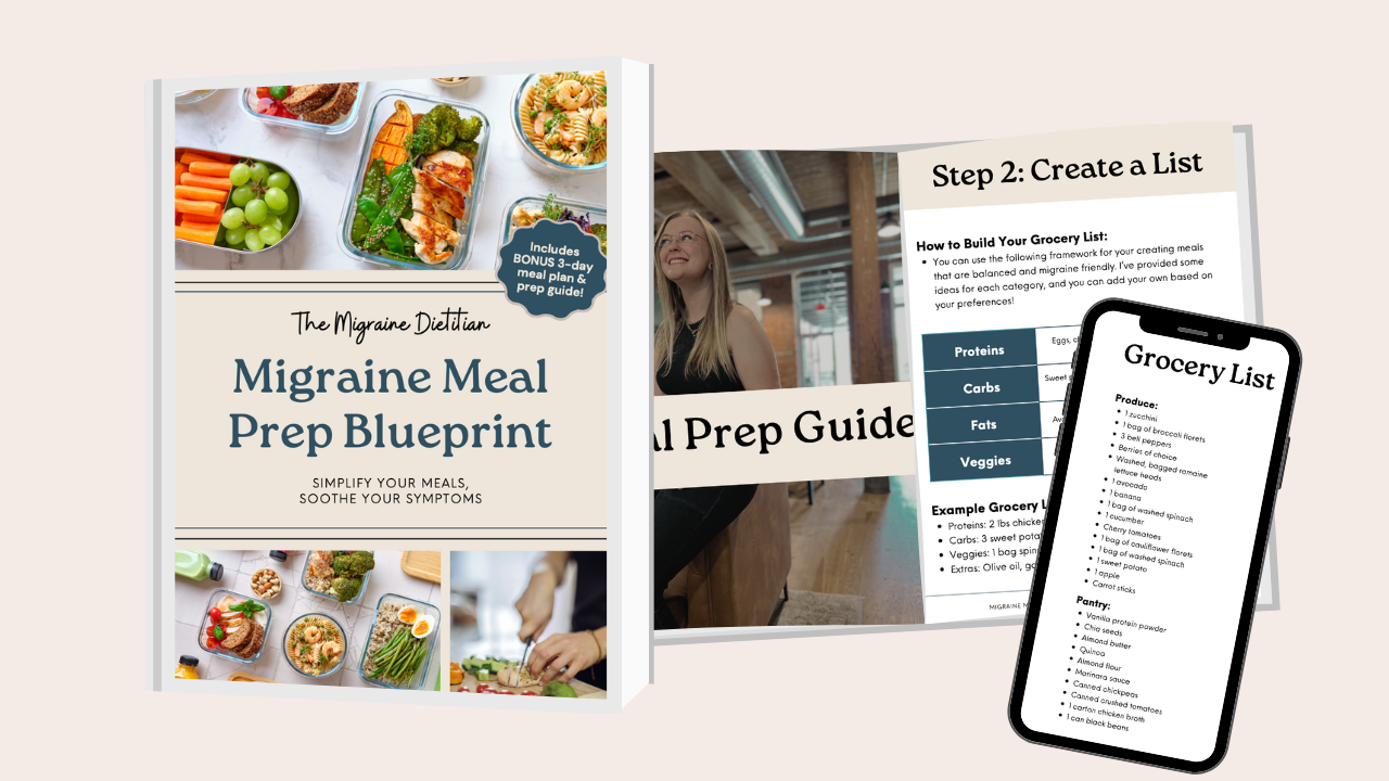 The Migraine Meal Prep Blueprint is designed to make your meal planning stress-free, giving you the tools to prepare nourishing meals that support migraine and your health overall. This guide will help you eliminate the guesswork, so you can enjoy balanced, migraine-friendly meals with ease—no more scrambling for ideas!